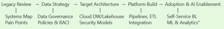- Built-in governance ensures execution discipline, stakeholder alignment, and measurable business impact.