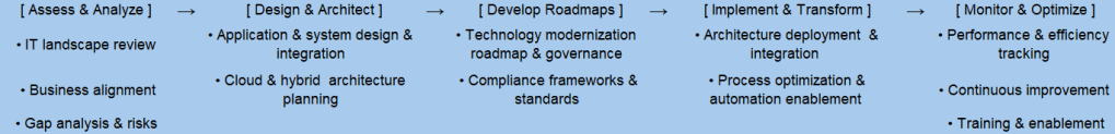 - Develop actionable roadmaps with standards, policies, and governance models to guide IT evolution.